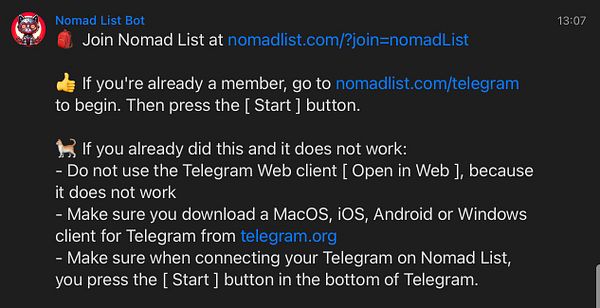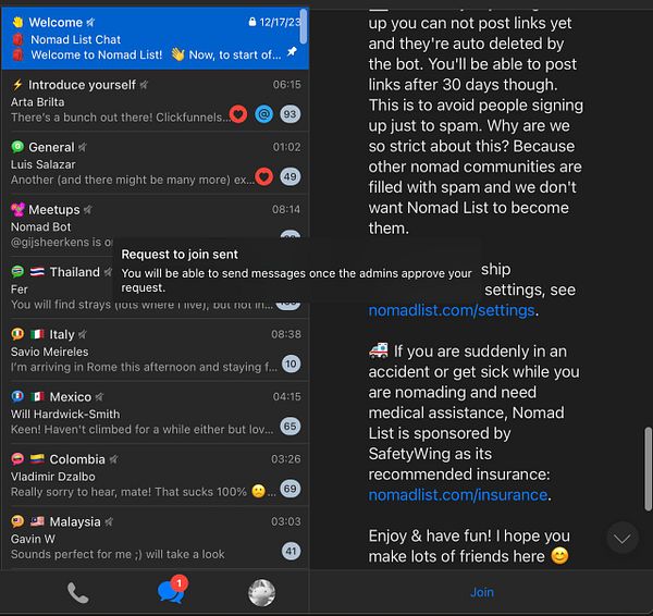make #nomads Telegram chat public but with [ Apply to Join ] chat join requests, because public groups have special benefits, and then auto approve new users if authorized
