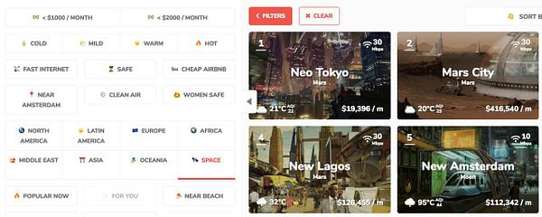 fix filter on cities in Space