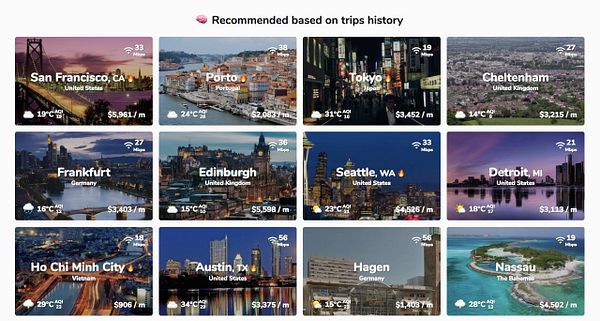 build recommendation engine that recommends places to a user based on their trip history