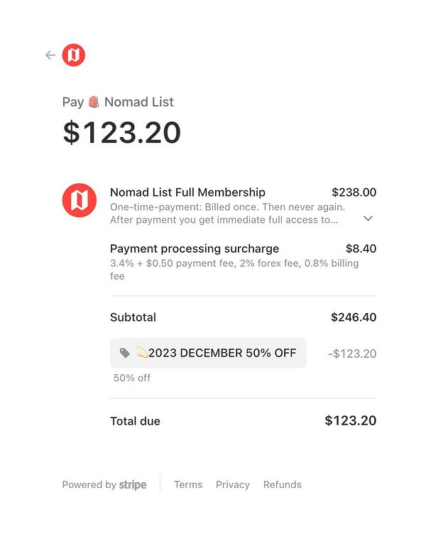 add payment processing surcharge because it’s strange we have to eat the Stripe fees