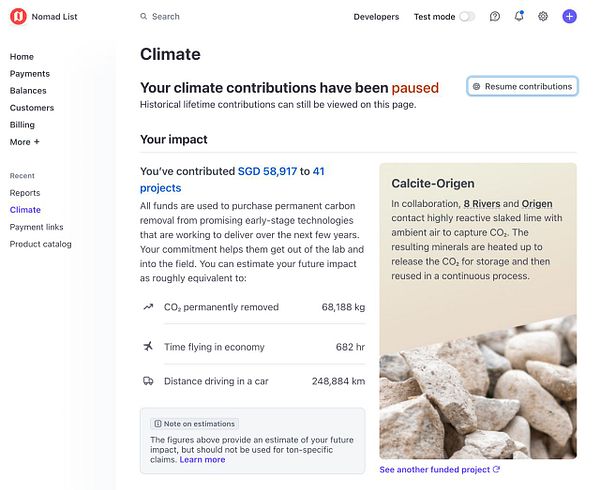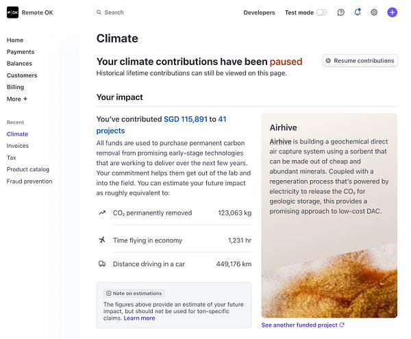pause Stripe Climate contributions because my Stripe fees are so insanely high now I can’t fund it anymore