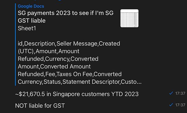 export all sites payments YTD to find out if I am liable for SG sales tax because accountant asked (tedious af)