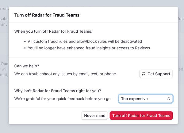 disable Stripe Radar