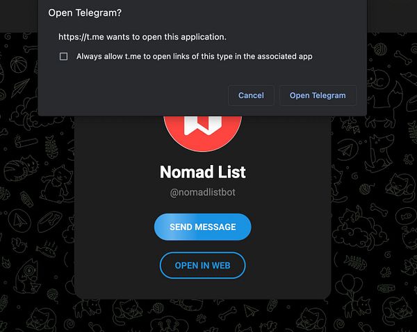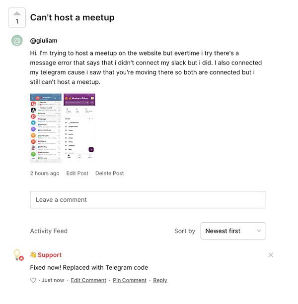 meetup required Slack account, replace with Telegram