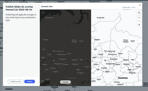 overlay Globe GL with Mapbox GL map so we can get the map names etc back and good if user zooms in