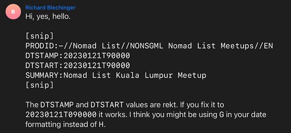 fix iCal file doesn’t work in morning