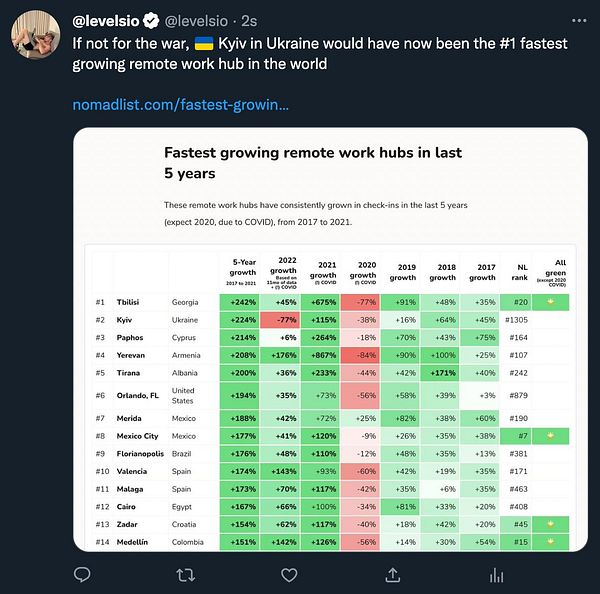 tweet about Kyiv #1 remote work hub if no war