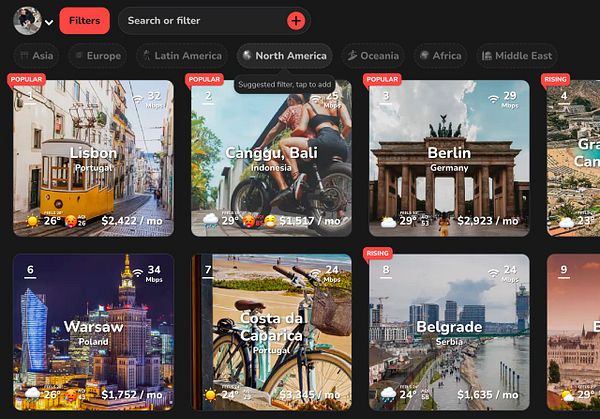 fix [ North America ] wasn’t shown as suggested filter because in filter it can’t match it as it’s shown as Northern America but has slug north-america, so change in filter #nomads