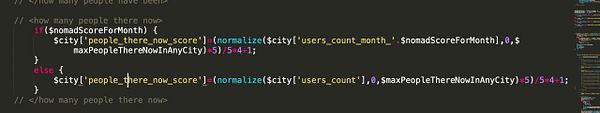 fix people_there_now_score less powerful influence because the range was set to max 15 check-ins but since then the site grew, so the range max should be dynamic based on most check ins of any city #nomads