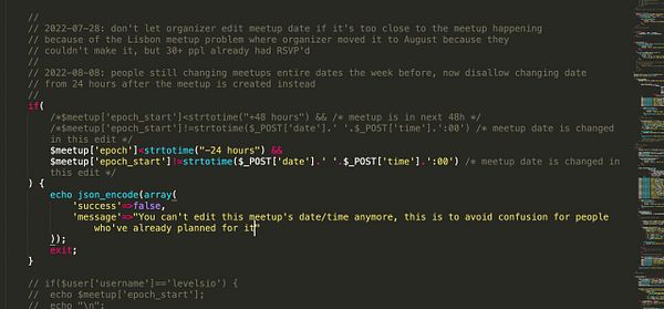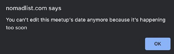 disallow changing meetup date/time because it’s too confusing for people if it just changes from Friday to Thursday in the week it’s happening for ex #nomads