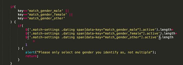 fix some American guys keep selecting they identify as multiple genders and it’s causing trouble on /dating, so limit identify as gender to ONE gender #nomads