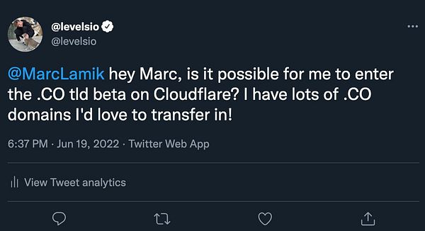 msg Cloudflare product head to get .CO TLD access