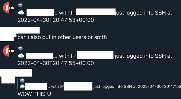 send auto chat msg if SSH login