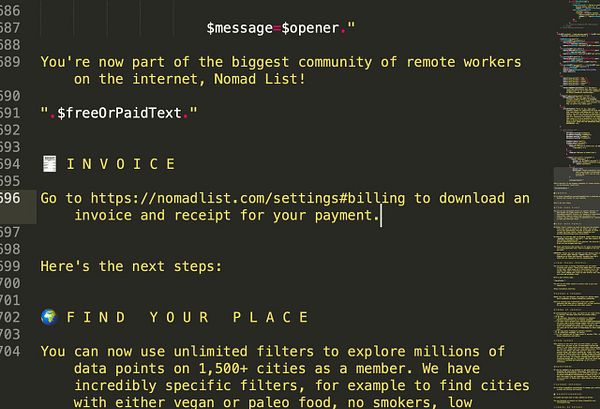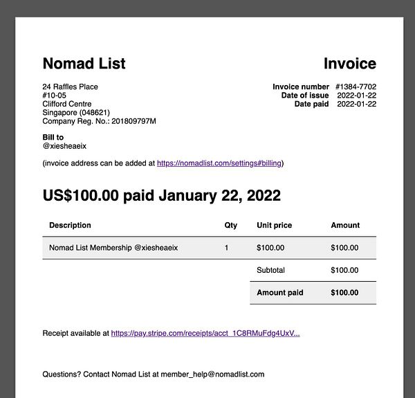 #nomads welcome email to reduce support questions for invoices, also add “(invoice address can be added at nomadlist.com/settings#billin… to invoice if address missing so they can add it directly
