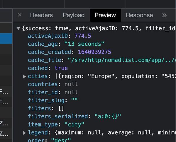 #nomads filter combo results by hashing the query and saving to for ex nomadlist.com/static/filter-0…, then when you filter JS generates hash, checks if URL exists as cache, if it 404s, it runs query on server, which generates the cache for later as static JSON, this /static/* folder is cached by a Page Rule on Cloudflare to a local CDN near you so that filtering now takes <75ms