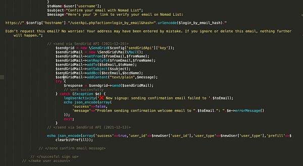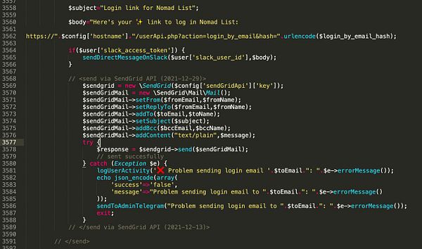 fix login didn’t work because added BCC email twice in SendGrid API #nomads “Each email address in the personalization block should be unique between to, cc, and bcc. We found the first duplicate instance…”
