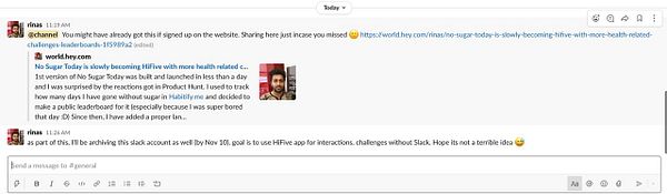 announcement about shutting down #nosugartoday slack in favour of #hifive app