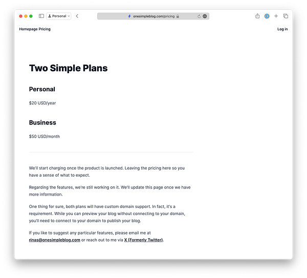 Update project name from onesimpleblog to OneSimpleBlog.com on website, twitter and here in wip