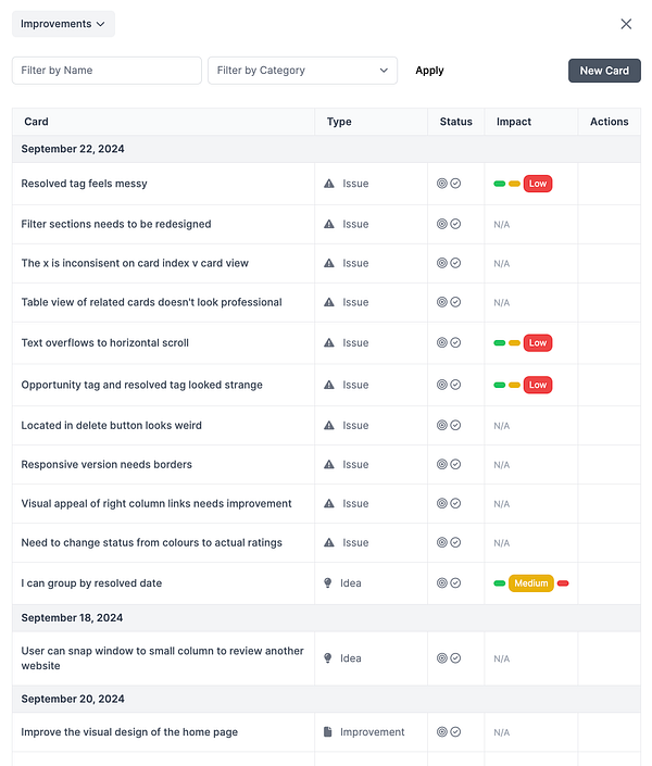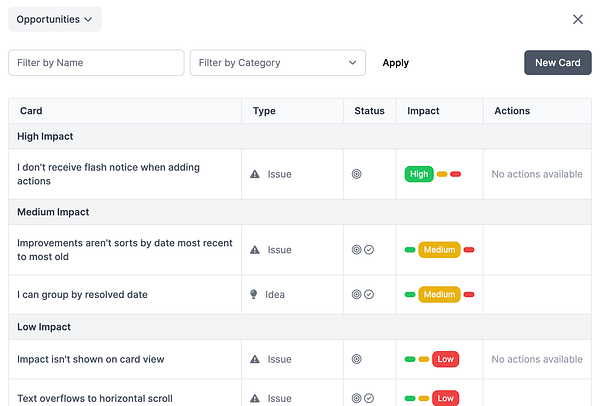 User can add an impact level to cards