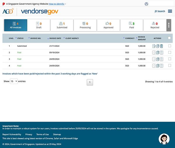 Sent last ever invoice (S$1000) to retro government invoicing platform Vendors@gov.. it's been a nice decade, thanks for feeding the fam all this time, and farewell, my most enduring client. Godspeed 🏁