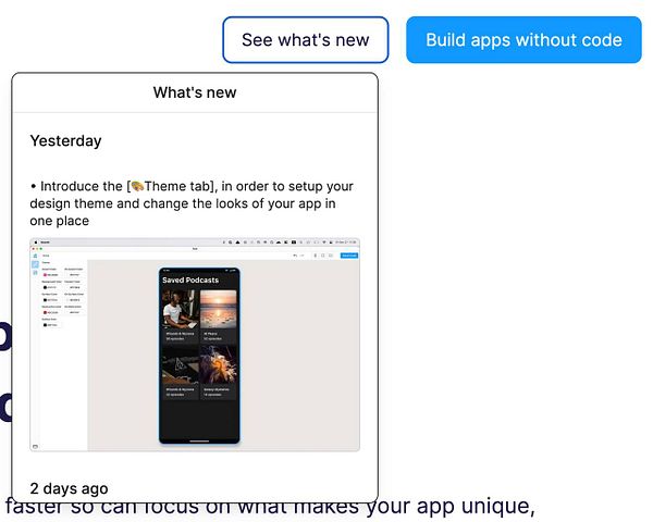 Introduce the [🎨Theme tab], in order to setup your design theme and change the looks of your app in one place