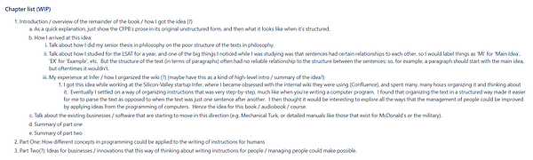 Made some small additions to the chapter list. My current goal is to try to get a high-level outline of the topics I want to cover.