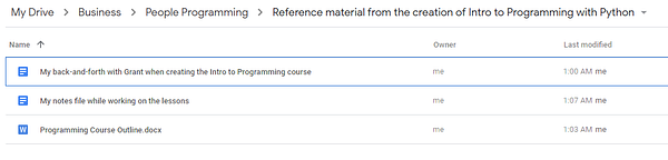 Gathered some reference material from when I was creating the 'Intro to Programming with Python' course so I can remember how I came up with the lessons, so I can use that same method to come up with the chapters for this book/course.