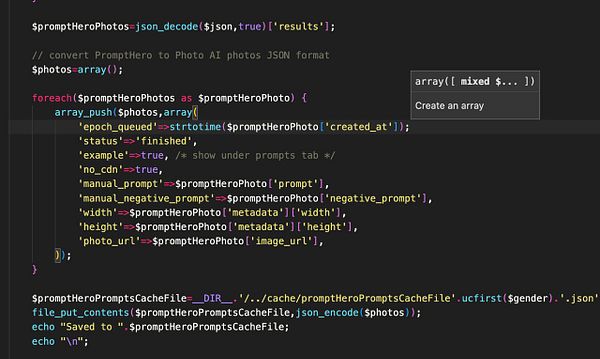 make #photoai landing page use a single sample photos cache created by /workers/generateSamplesAndPromptsCache.php for the header photos and the camera roll below to stop it taking down the site when it does the SQL query on the page load