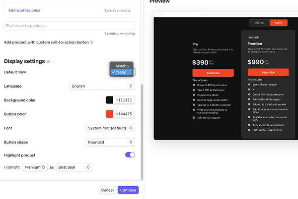 set default pricing table view to Yearly because Stripe added it and it should increase revenue