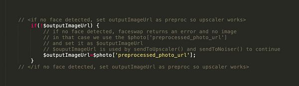 fix long time bug where photos WITHOUT faces in them couldn’t be finished because the pipeline broke at faceswap and face detect, now we just use the previous image from pipeline (preprocessed) and continue with that to upscaler or noiser