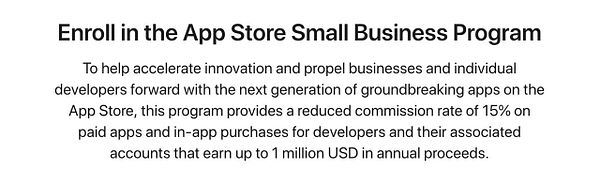 apply for Apple Small Business Program to get 15% iOS App Store fee instead of 30%