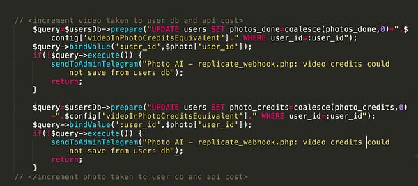 decrement photo credits by 10 photos if a video is made because we count it as $config['videoInPhotoCreditsEquivalent’]=10