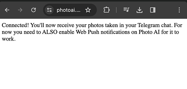 Telegram bot so people can get push notifications when photos done and maybe take photos from Telegram later