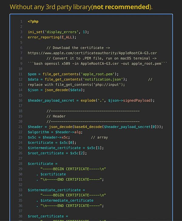decode iOS webhook payload with vanilla PHP code