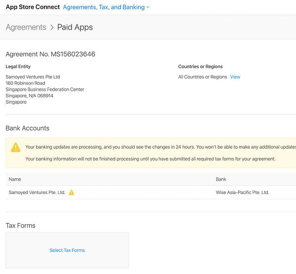 add bank account and tax info for iOS App Store