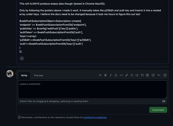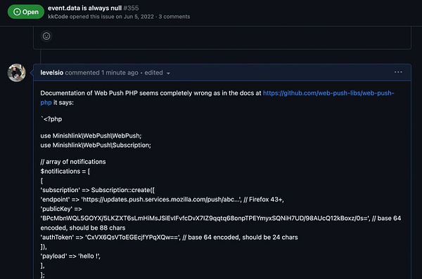 tell Web Push PHP lib its docs are wrong