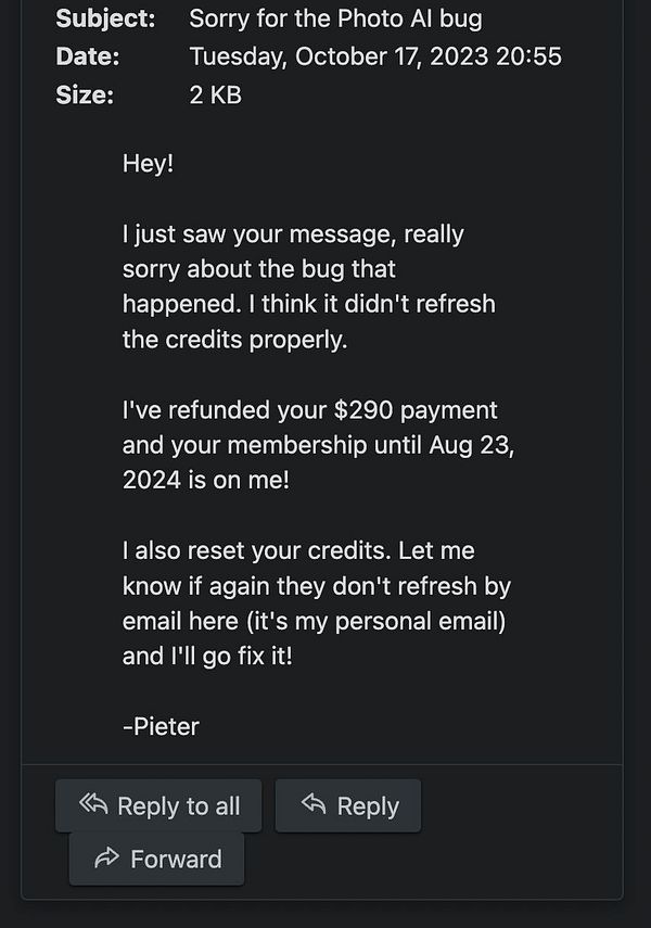 refund and email