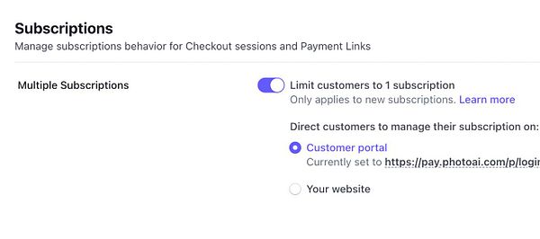 enable new [ Limit customers to 1 subscription ] feature