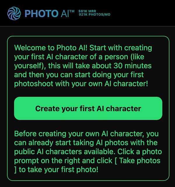 add big button [ Create your first AI character ] for new users