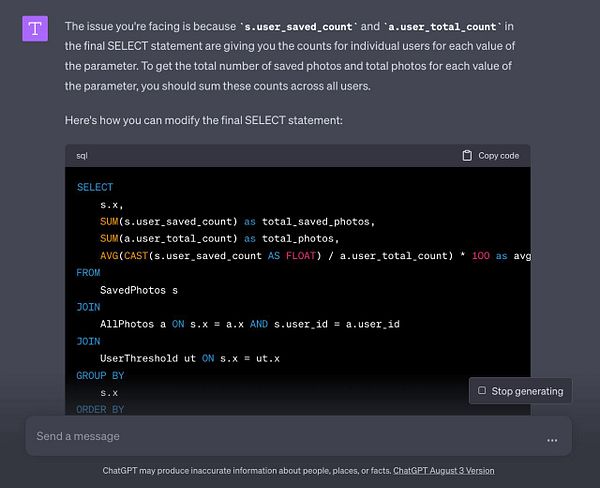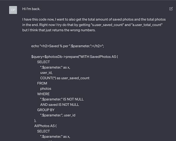 ask GPT4 how to get the total saved and total photos but with the treshold of 10 photos minimum