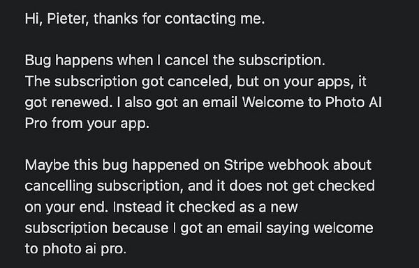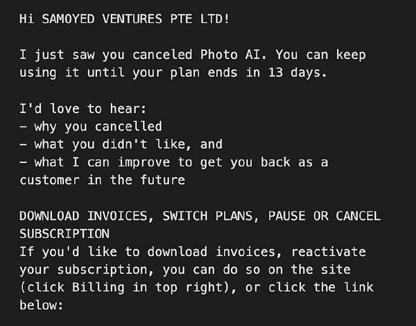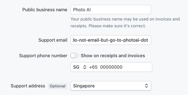 change Stripe email to for-help-do-not-email-but-go-… and add “Self-service support” to Stripe pricing table to make clear we’re 100% self service biz #photoai