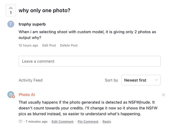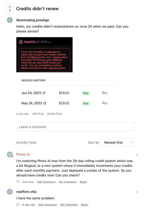 get forced to switch #photoai to the new credit system which adds credits when payment goes through because people confused by the 28-day rolling credits