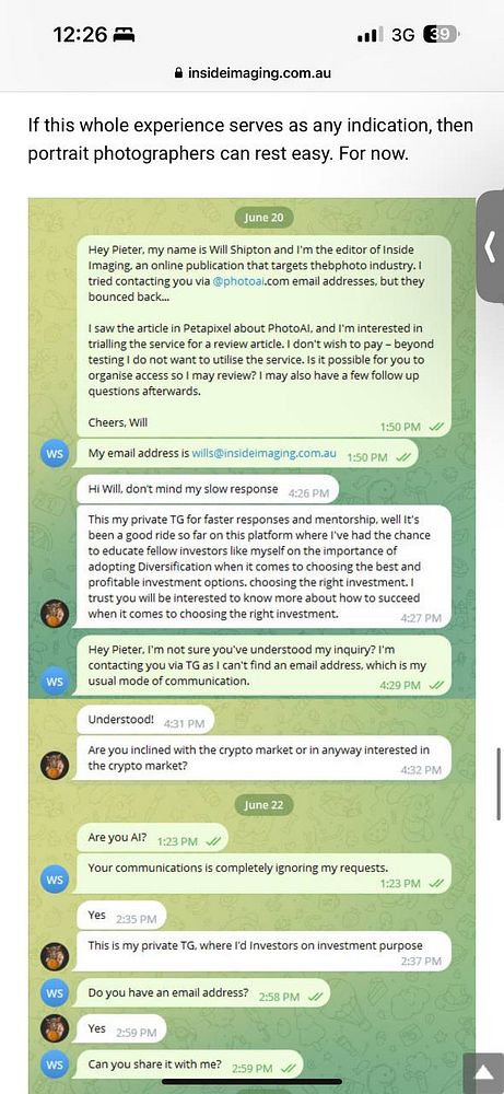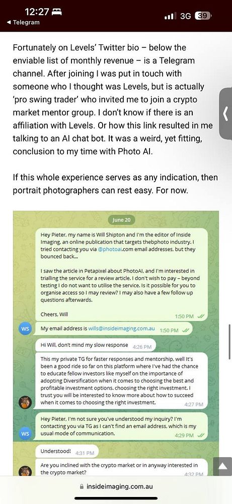 #photoai but they try contact me by clicking a crypto scammer Telegram link and she says it’s in my bio and it’s me, retarded or just lying, maybe sue for defamation?