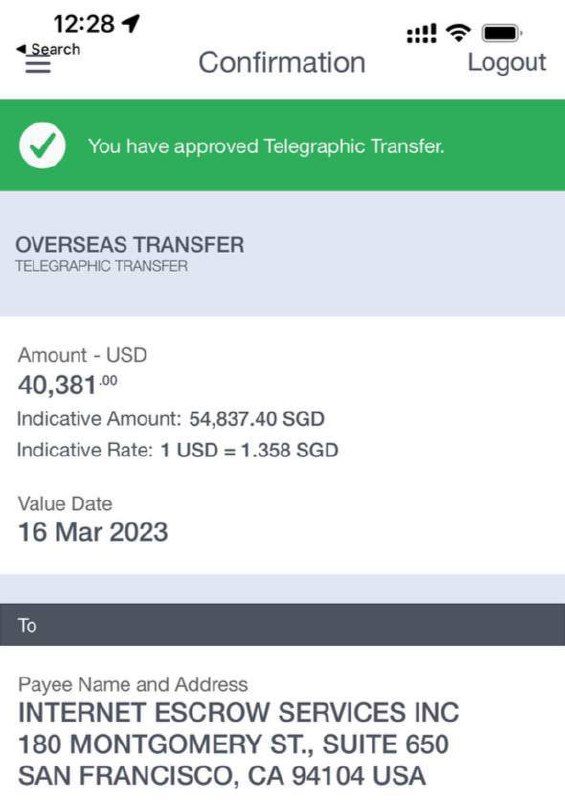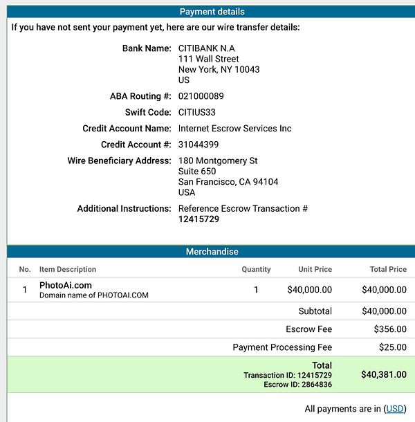 send domain money again because Escrow doesn't take Int'l ACH payments
