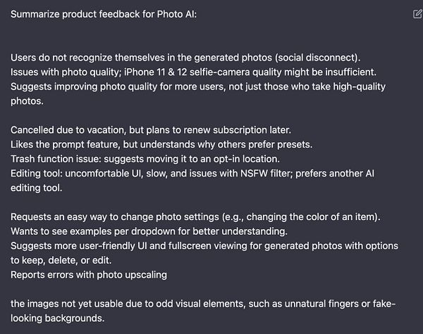 ask GPT-4 to summarize product feedback on cancel emails