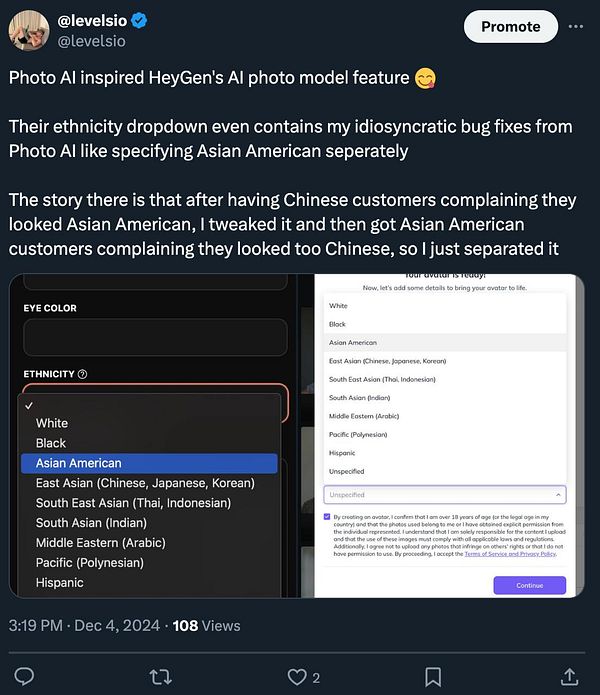 see HeyGen copy-paste Photo AI's ethnicity dropdown verbose