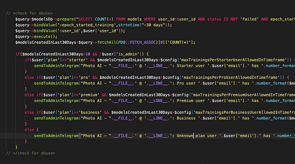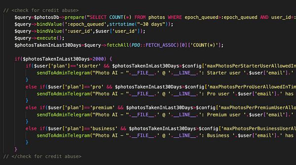 send message to myself if user has more photos taken than allowed in their plan (meaning abuse)