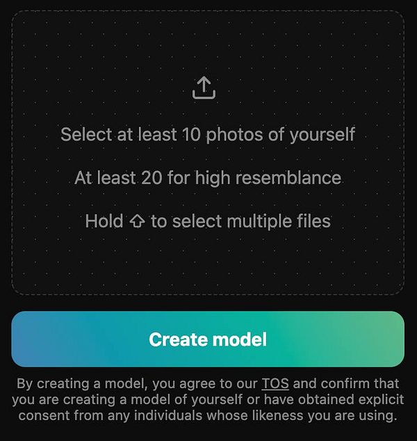 add legal terms under Create Model button for clarity