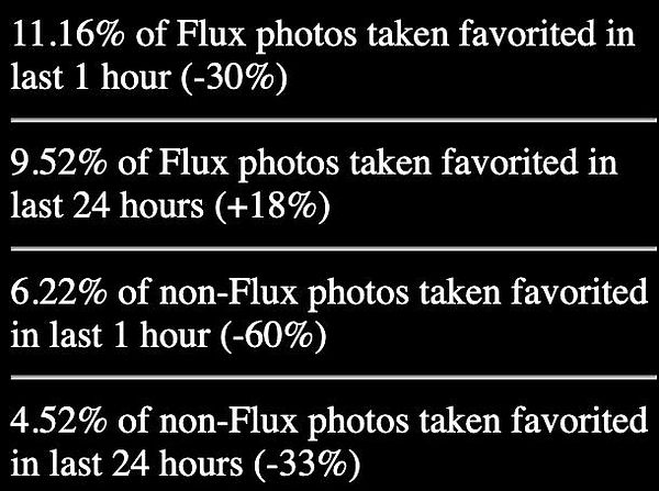 measure increase in liked photos with Flux vs non-Flux and it's about 2x