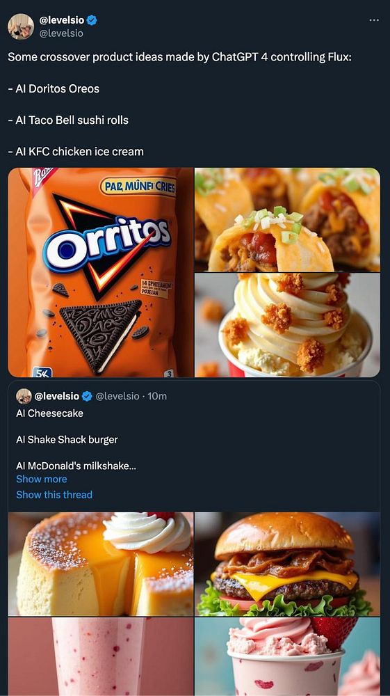 make crossover product ideas by hooking up ChatGPT 4 to Flux